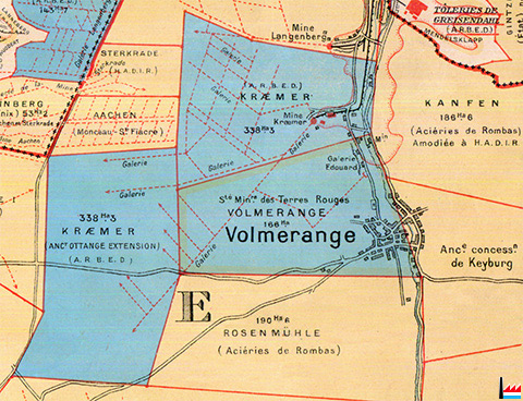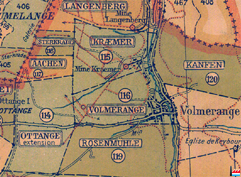 entre les concessions / mines: Langenberg, Kanfen, Volmerange, Aachen, Sterkrade