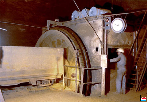 dans le culbuteur de la Mine de Mairy (Photo: François-Xavier Bibert)