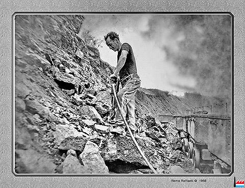 Bruno Raffaelli am Tagebau Rollesbierg zu Déifferdeng am Metzkimmert erop - 1952 (Photo collection: Remo Raffaelli)