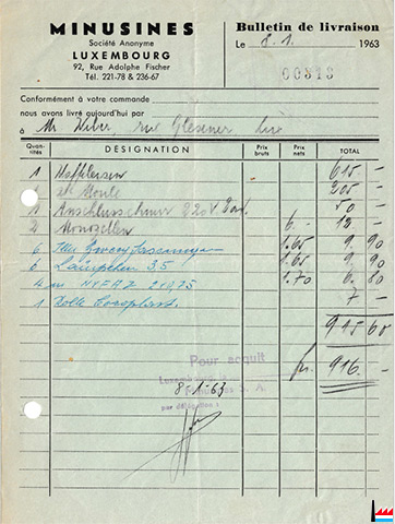 Minusines S.A., 92 rue Adolphe Fischer, Luxembourg - factures de 1963 / 1964 (Collection: Romain Weber)