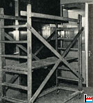 2 Stärken (90 x 33 und 70 x 27 mm) Die Holme wurden dann auf der Vierseitenhobelmaschine in einem Arbeitsgang gehobelt Kerben / Loch (eng Stouf): mit Stemmmaschine (waagerechte Bohrmaschine), Kettenmaschine und später mit Schwingmeissel (6 Löcher gleichzeitig) |