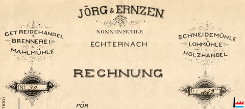 Jörg & Ernzen, Nonnenmühle, Echternach: Getreidehandel, Brennerei, Mahlmühle,