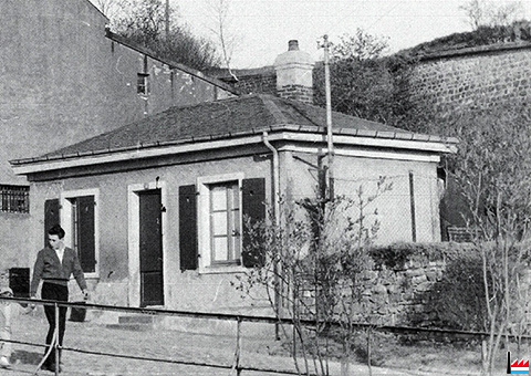 1870 - le bureau d'octroi, à côté de la Strockekapell intégrée dans les murailles du Fort Rumigny, l'ancienne porte extérieure de la route de Trèves (Photo: KUHN Dominique 1870; © Photothèque VDL; rénovée par Claude Goergen)