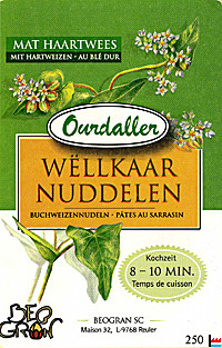 Ourdaller Wëllkaar Nuddelen Buchweizennudeln Ouni Gluten Glutenfrei sans gluten Ourdaller Buchweizenmehl und Guarkernmehl. BEOGRAN, Reuler |