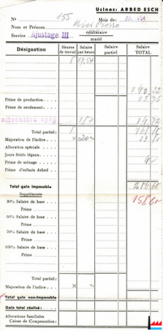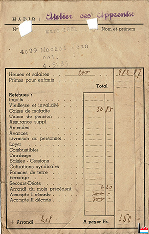 Paifiche vun der HADIR - Atelier des appprentis - Lohnabrechnung 3.1951 (Collection: industrie.lu)