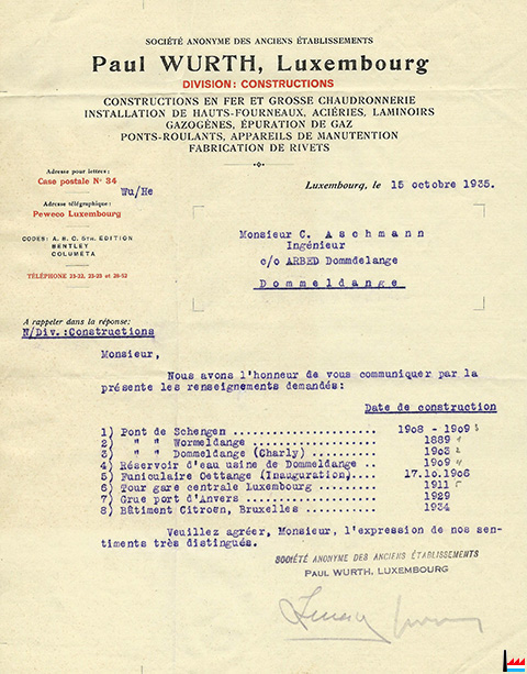 11.10.1935 - Société anonyme des anciens établissements Paul Wurth, Luxembourg - Papier à lettre à entête - Archives Camille Aschman Jr. - Collection famille Aschman-Bodson