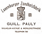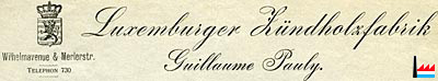 Zündholzfabrik - modifié: «Luxemburger Teigwarenfabrik Guill. Pauly, Luxembourg-Merl (Registre aux firmes N° 1473 - Du 12 juillet 1920) |