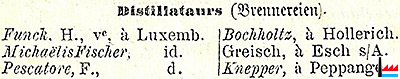 | 1857 | ![]() Distillateurs - Brennereien : Pescatore, F., à Luxembourg |