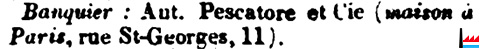 Banquier: Ant. Pescatore et Cie, Luxembourg (maison à Paris, 11 rue Saint-Georges) |