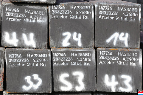 Stahlblöcke (blooms) von Arcelor Mittal Ru (Ruhrort) im Rodinger Werk (Photo: 16.9.2017 jmo)