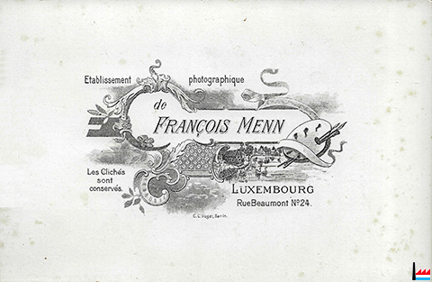 | 1903 ou 1904 | ![]() Etablissement photographique de François Menn, Luxembourg, rue Beaumont n° 24 (Collection famille Aschman-Bodson) |