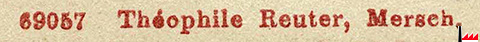 | <=1904 | Frank - Rix, Bettborn Wilhelmus Philippe, Christnach Wagner - Wintersdorf, Herborn Frl. Schok (Schock ?) M., Cäcilienstenstraße, Luxemburg-Bahnhof Schoren P.K., 11 avenue de la Gare, Luxemburg-Bahnhof Hamper - Pesch, Mamer Schummer - Hamper, Mamer Hansen E., Photograph, Mersch Kraemer E., Mondorf Schumacher N., Mondorf Bix Joseph, Rumelange Thill Jean, Rumelange |