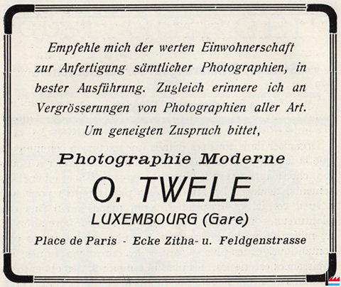 | <=1962 | Fey frères, photographes, Luxembourg, 41 Grand-rue, tél: 25831 |