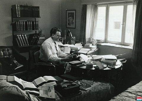 1959 (?) - Pol Aschman, journaliste, photographe-reporter, dans son bureau sis au n° 7 de la rue Émile Lavandier à Luxembourg.