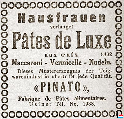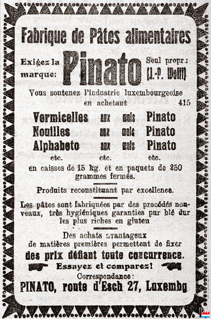 | J.-P. Wolff fabricant de pâtes alimentaires Pinato 27 route d'Esch Luxembourg |