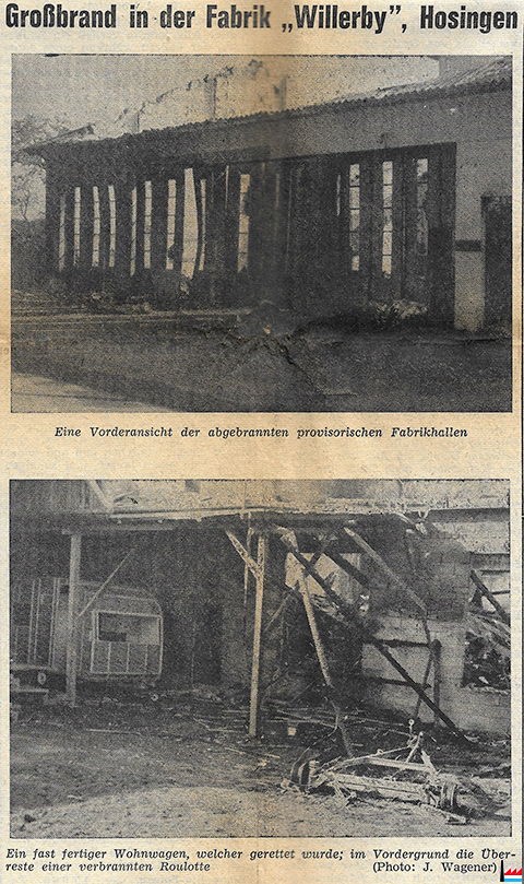 | 3.10.1964 | ![]() ![]() Feuersbrunst in der angemieteten provisorischen Fabrikhalle der Willerby, Hosingen (LW: 5.10.1964 p. 6; Scan: Fernand Toussaint) |