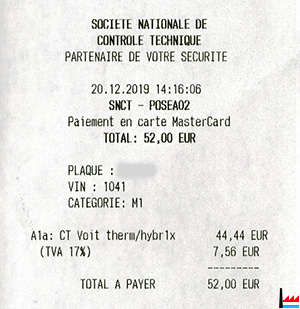 | 20.12.2019 | ![]() Prix contrôle technique SNCT Luxembourg: 52 € |