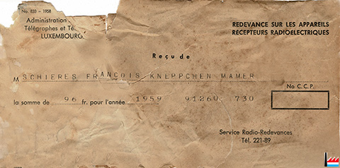 Redevance sur les appareils récepteurs radioélectriques No 91260 730 : 96 fr pour Radio Ducal Billy |