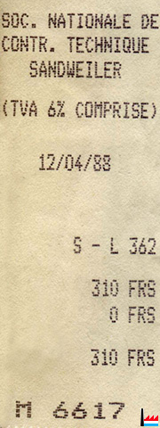 | 12.4.1988 | ![]() Prix contrôle technique SNCT, Sandweiler: 310 francs = 7,68 € |