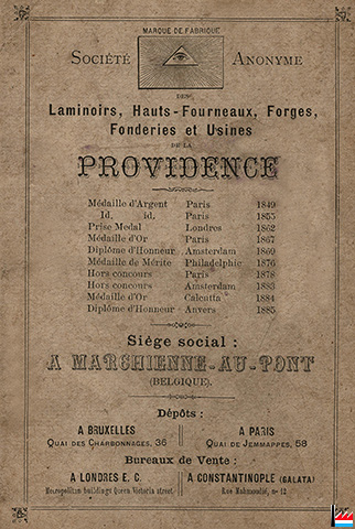 | 22.6.1856 | Fondation de la Société en participation des Forges de Sarrebruck (Allemagne / Zollverein) e.a. par: Charles Biouge, Charleroi, avocat et président du conseil d'administration de la Providence Léopold de Paul de Barchifontaine, Marchienne-au-Pont, administrateur de la Providence Théopile Ziane, directeur de la Providence à Marchienne-au-Pont |