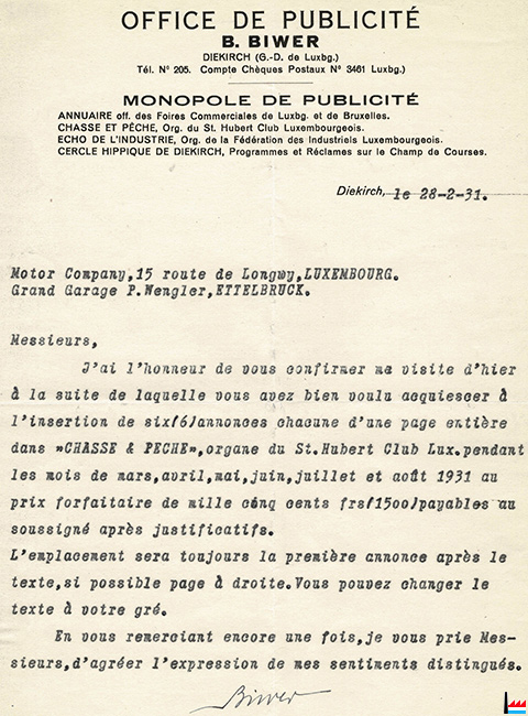 | <=1935 | BRUECK Georges, „PUBLICITE MODERNE“, Luxembourg, 33 rue Neyperg |