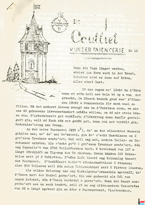 Rédacteur: Fernand Mischo 90 Ausgaben über 15 Jahre (Source: Pierre Mischo in Artikel "Kindheitserinnerungen an das Villeroy-Areal" von David Thinnes; LW: 2.4.2022) |