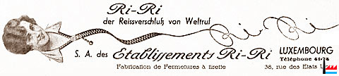 | En 1970, le groupe RiRi entre dans les girons de Talon Atlantic, division du Groupe Textron (connu e.a. par les hélicoptères " Bell", les stylos "Sheaffer", les agrafeuses " Bostitch"); le 14 août 1975 la raison sociale de la société est changée en Talon S.A. Peu après le groupe américain décide de rationaliser le réseau européen de l'ancienne société RiRi et d'arrêter la production dans l'usine luxembourgeoise qui fut transformée en un centre de distribution. Depuis 1976 Talon S.A. ne fait plus partie de l'industrie mais du commerce. | |||