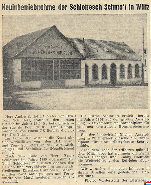 ![]() Neuninbetriebnahme der Schlottesch Schmëtt in Wiltz (LW: 16.11.1959 p.6; Scan: Fernand Toussaint) |