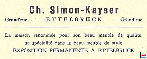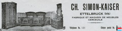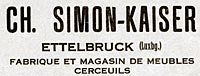 | 1914 | Karl Simon - Kaiser, Ettelbruck Möbel- und Sargmagasin Inhaber: Karl Simon, Ettelbrück. (Inscription au registre aux firmes N° 682 - Du 30 novembre 1914) |