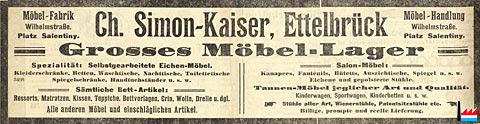 | 1909 | Möbelfabrik Ch. Simon - Kaiser, Wilhelmstraße - Platz Salentiny, Ettelbrück |