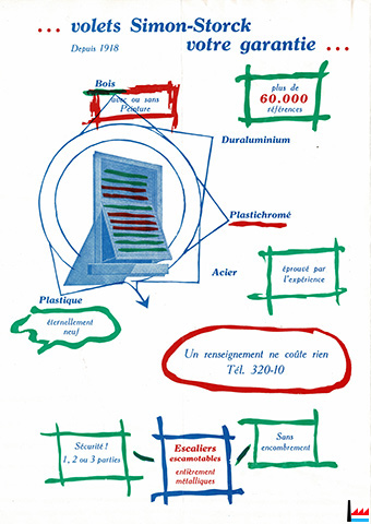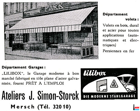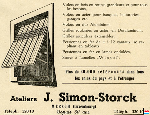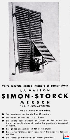 | 1948/49 | ![]() Simon - Storck, volets roulants, jalousies - 1948 (Collection industrie.lu) 95 rue Nicolas Welter, Mersch |