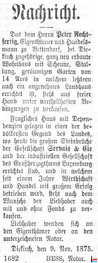 acte du notaire. Baldauff d'Echternach, enregistré, ainsi que les concessions de carrières qu'elle