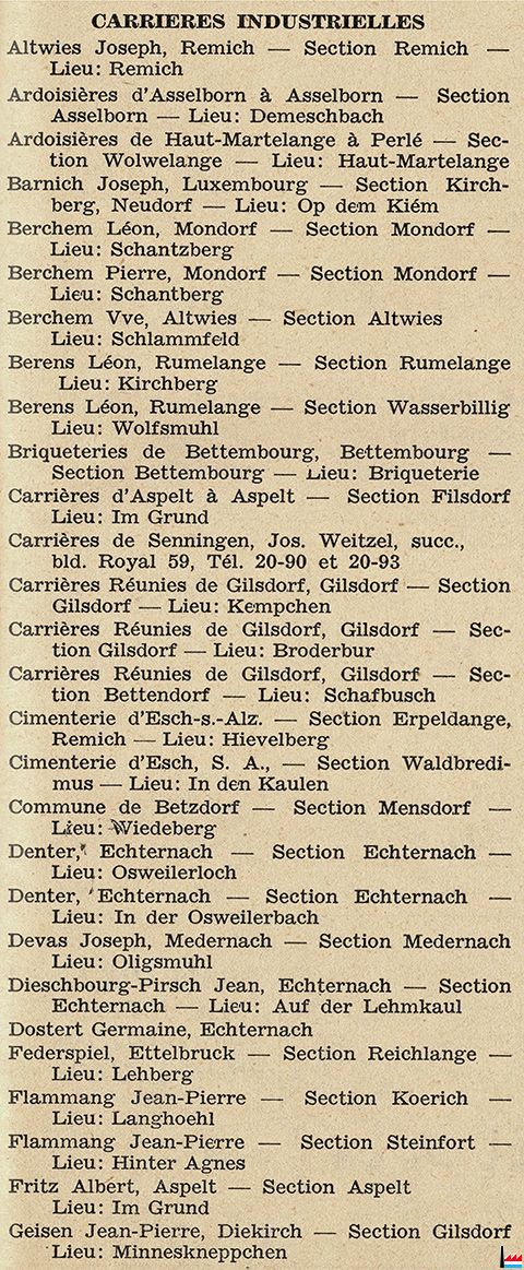 Aspelt Carrières d'Aspelt S.A.   28.1.1923 1931   Conseil d'administration (1948):