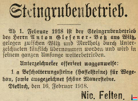 Nic. Felten / Anton Glesener - Betz: in Ettelbrücker Zeitung 1918 (Scan: Serge Kugener)