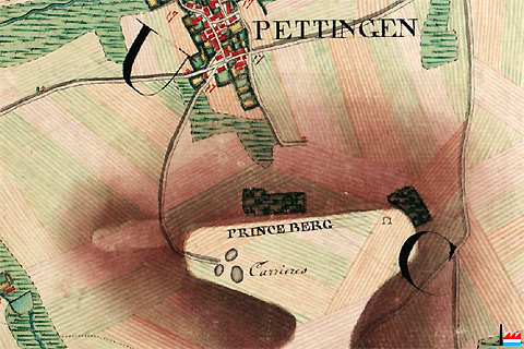 Carrières Princeberg, Pétange - Petingen (Pettingen) - 1777 (Carte de Ferraris - Bibliothèque royale de Belgique - 2010)