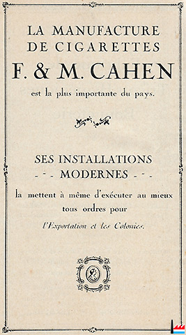 La Manufacture de cigarettes F. & M. Cahen est la plus importante du pays - 1922 (Publicité -