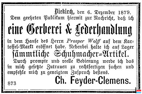 | 1879 | Gerberei und Lederhandlung Charles Feyder - Clemens (* 1852 Diekirch) |