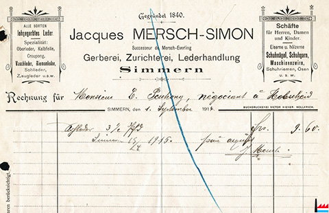 Jacques Mersch - Simon, successeur de Mersch - Everling, Simmern (Facture / Rechnung 1.9.1914; Buchdruckerei Victor Gieser, Hollerich; Collection industrie.lu)