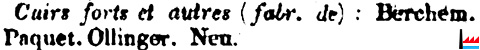| 1857 | ![]() Tanneurs au Grand-Duché de Luxembourg - Gerber in Luxemburg - 1857 (Source: Almanach du Commerce du Grand-Duché de Luxembourg par N.C., 1re année, 1857, Luxembourg, Heintzé Frères, Libraires-Éditeurs; Collection: famille Aschman-Bodson) |