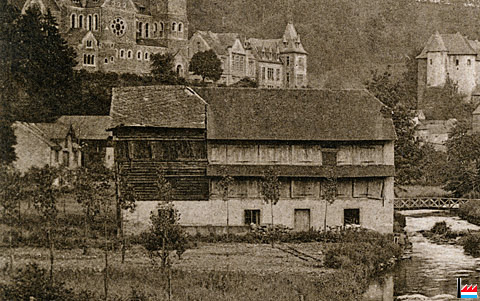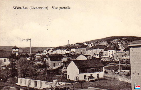 A l'avant-plan la Tannerie Faber à Niederwiltz,