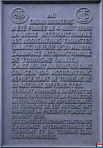Au Casino bourgeois a été fondée le 4 août 1898 la Ligue Internationale des Associations Touristes (L.I.A.T.) devenu le 30 mai 1919 l'Alliance Internationale de Tourisme (A.I.T.) (Photo: