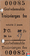 Souvenirs de touristes à Goebelsmühle: Facture de l'Hôtel - Restaurant Schroeder - Billet CFL 3e classe 29 Fr - 19.8.1955 de Goebelsmühle - Troisvierges frontière (Collection: industrie.lu)