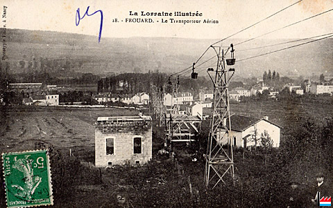 Transporteur aérien de la mine à l'usine de Montataire à Frouard - vers 1914 (Carte