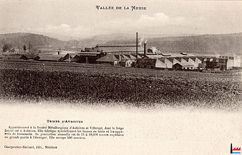 Société Anonyme Métallurgique d'Aubrives et Villerupt Siège social: Aubrives Fusion de la Société des Fonderies d'Aubrives et des Mines et Hauts Fourneaux de Villerupt - Sainte-Claire |