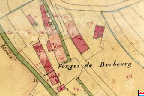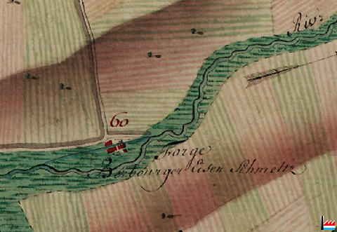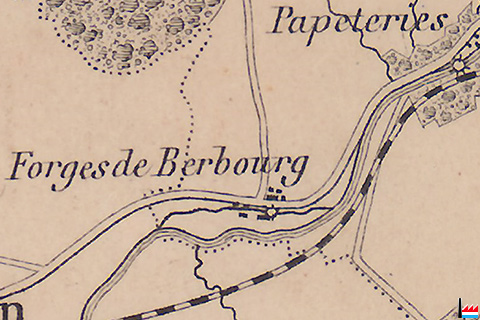 ![]() Forge - Berbourger Eisenschmeltz - 1777 (Carte de Ferraris - Bibliothèque royale de Belgique - 2010) |