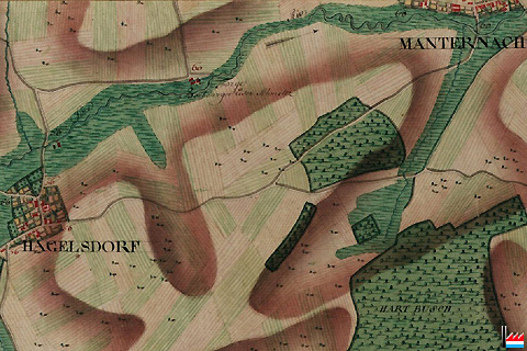 Moulin entre Wecker et Hagelsdorf - 1777 (Carte de Ferraris - Bibliothèque royale de Belgique - 2010)