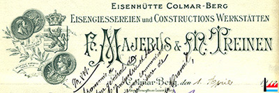 | <=1.4.1919 | ![]() Eisenhütte Colmar-Berg Eisengiessereien und Constructions Werkstätten F. Majerus & M. Treinen |