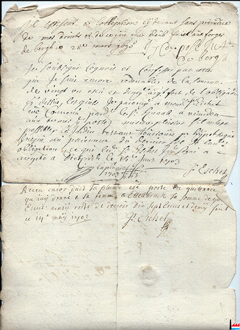 | 9.4.1777 | ![]() A Monsieur de Blochausen, ... de Mensberg (château de Malbrouck) la Rochette et autres (Collection: Jean Diederich) maître des forges de Bergh à Bergh |