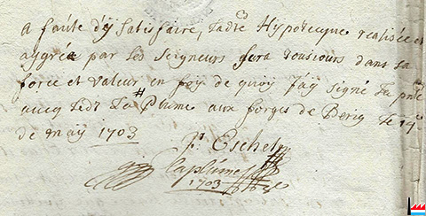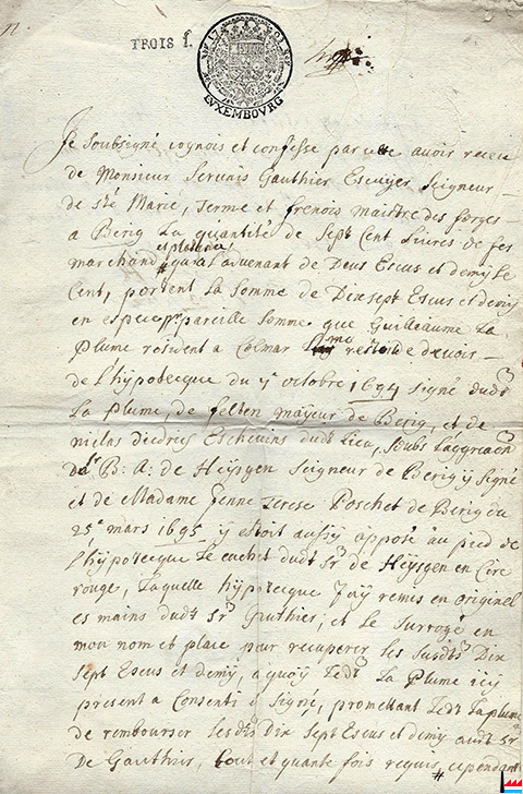 | 29.8.1695 | ![]() Vente de la Communauté de Lorentzweiler au profit de Gauthier, maître de forges de Berg (Collection: Jean Diederich) |