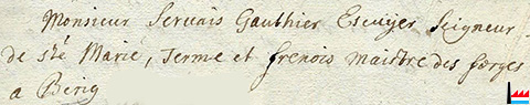 | 1696 | Mariage Servais Gauthier - Jeanne Thérèse Poschet (1660 - 1701), veuve d'Antoine Piret, maître de forges à Berg et à Rollingen, décédé en 1689 | ||